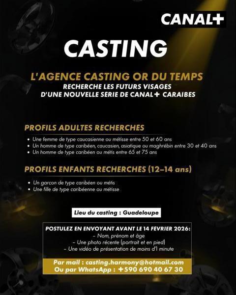 | Lancement d’un casting pour une nouvelle série HARMONY de Canal + Caraibes ![]() Dans le cadre du développement de la nouvelle série HARMONY une fiction de Canal + Caraibes, nous ouvrons une première phase de casting pour plusieurs rôles, à destination de comédiennes et comédiens en Guadeloupe. |